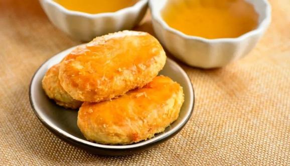 老婆饼,是广东省潮汕地区的糕点,是以面粉、猪油、糖、白芝麻等食材为主要原料烤制的点心。它的做工简单,口感层次却不单一,具有皮薄馅厚,馅心滋润软滑、味道甜而不腻的特色。