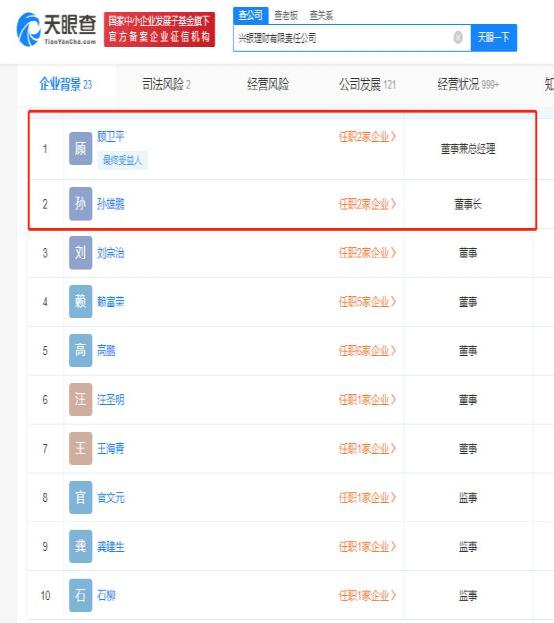 天眼查信息显示,兴银理财此前董事长为兴业银行副行长孙雄鹏,总经理为顾卫平,顾卫平同时为兴银理财的法定代表人。