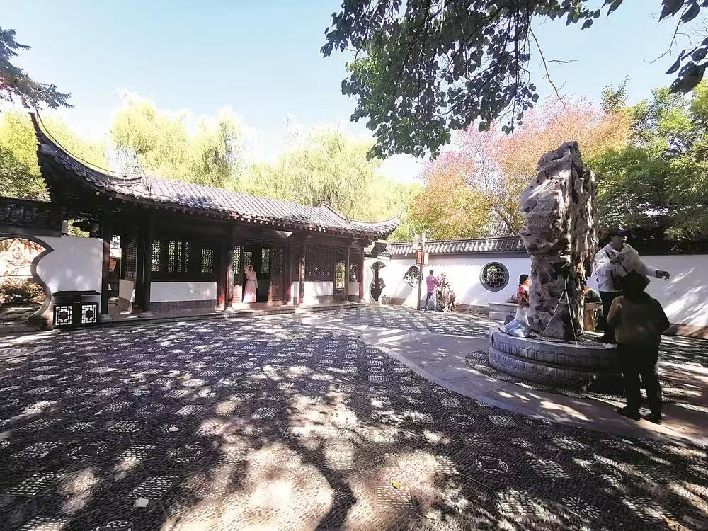 “来,看镜头,慢慢走,微笑……”在公园内的一处回廊中,今年62岁的周阿姨正在为朋友拍摄小视频。在她的指导下,朋友摆出各种优雅的姿势,周阿姨频频点头,对拍摄效果十分满意。“我们几个老姐妹经常约在这里聚会,既能欣赏古典美景,还能拍出好看的视频和照片,人也不是很多,有一种不出城就能欣赏江南园林的感觉,很多人看到我们拍的视频和照片都以为出去旅游了呢!”