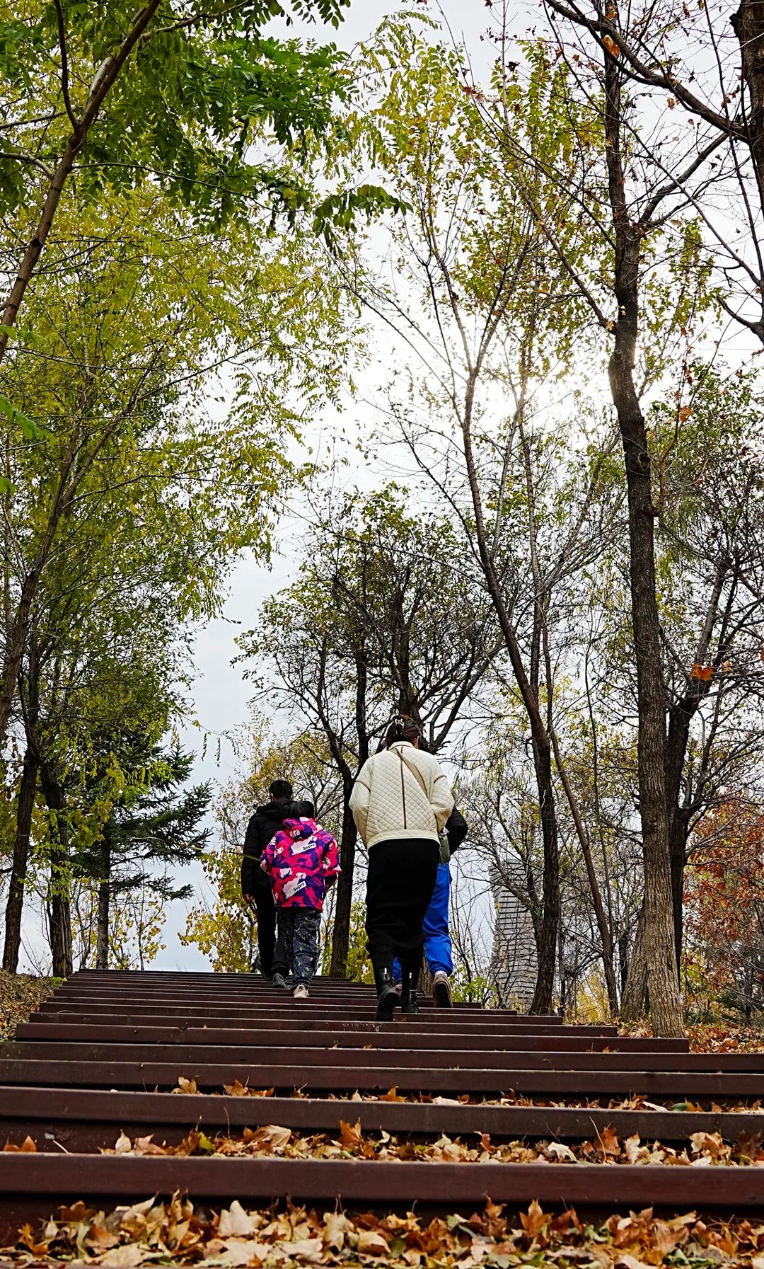 站在湖边栈道向远望去,园内各种色彩交相辉映,深浅不同、亮暗有别、层次分明,让人仿佛进入了童话般的世界。