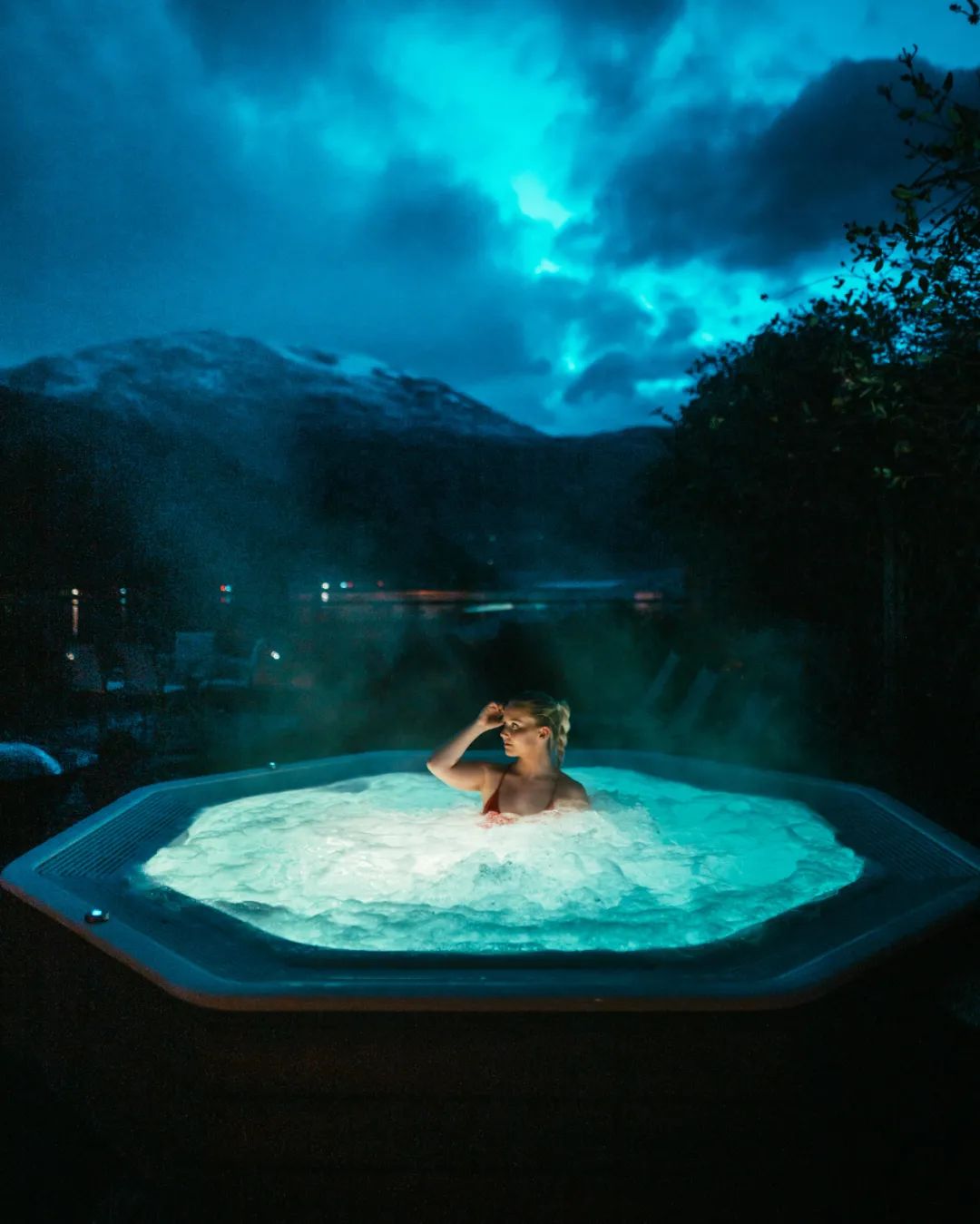 很多酒店都有户外泡温泉服务,或是在林间听着鸟鸣,或是远眺峡湾风光,好不惬意。