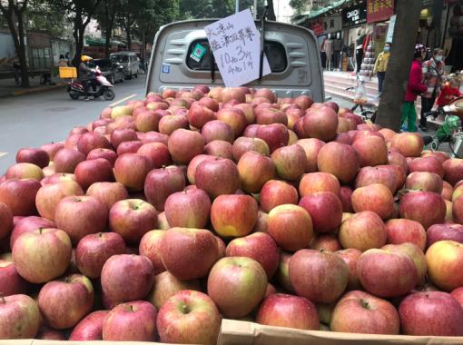 满车红彤彤的盐源苹果和一块白底黑字广告招牌,引发了我对一段往事的回想。