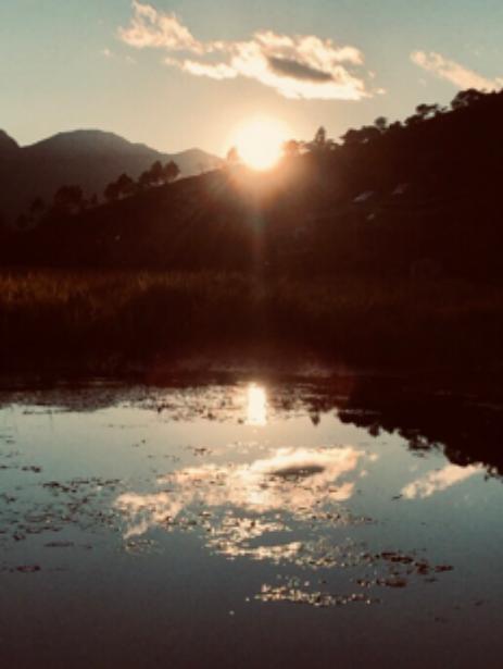 黄昏时分,我们面对倒映水中的绚烂晚霞,纵情唱起《夕阳红》来!