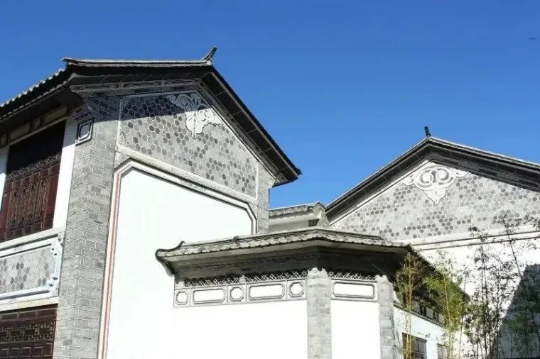 白族建筑多采用殿阁造型,飞檐串角, 再以泥塑、木雕、彩画、石刻、大理石屏、凸花青砖等组合成丰富多彩的立体图案,显得富丽堂皇,又不失古朴大方。