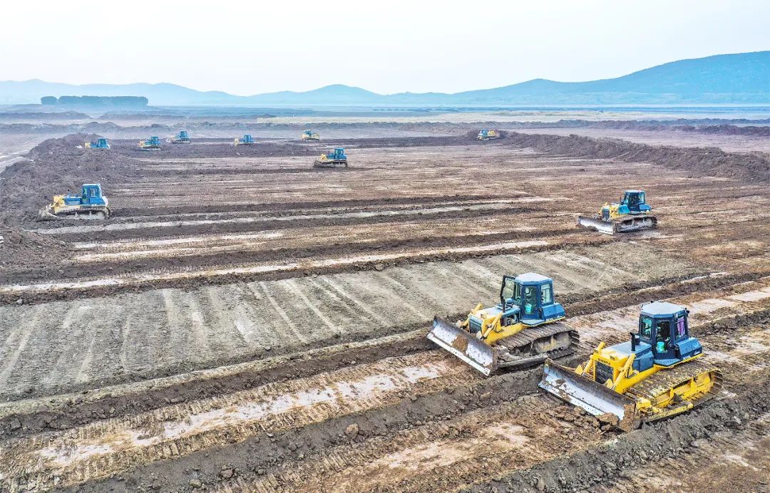 10月26日,记者在化家湖水库库区防渗处理工程建设现场看到,推土机、挖掘机正紧张有序地进行作业,彩旗迎风飘扬,工程建设热火朝天。