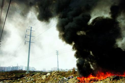 为了从废弃电路板中提取铜,就把拆解后的电路板简单堆放燃烧;