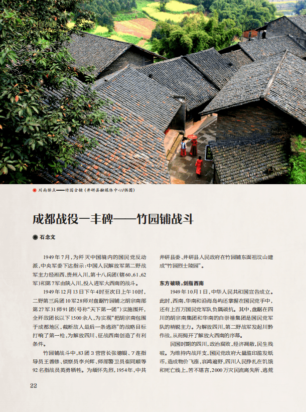 竹园铺血战,是解放战争后期西南战场最惨烈的一次攻坚战,也是成都战役决战前夕中国人民解放军打响的第一个歼灭战。在这场战斗中,92名解放军指战员光荣牺牲,用生命树立起一座座不朽的丰碑。