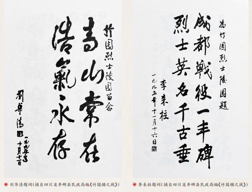 井研竹园烈士陵园建成后,井研县相关部门先后多次组织全面深入的资料采集活动,走访大量目击者、国共双方参战人员和各界群众,形成一套详实的访谈记录,并在此基础上,编撰成《竹园铺之战》《成都战役首战纪实》等纪实文献。中共中央政治局原常委、中央军委原副主席刘华清,中共中央政治局原委员、国务院原副总理陈锡联,原兰州军区司令员杜义德,原北京军区司令员李来柱,四川省原省长鲁大东等领导同志先后为井研竹园烈士陵园题词、撰文、捐赠文物。