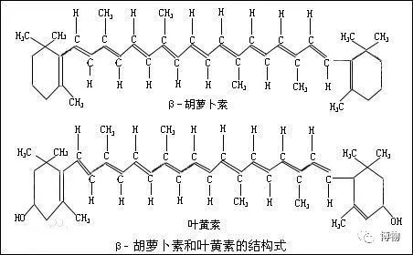 上面说的类胡萝卜素包括两类,橙黄色的胡萝卜素,和黄色的叶黄素。
