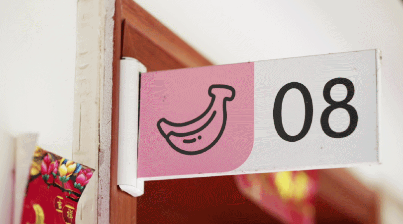 根据老人的行为习惯,她们重新设计了一套导视系统,楼层每一层分橙色、绿色等不同颜色,用4个水果代替,每间房间号码不超过两位数,方便老人记忆。老人房间的亚克力钥匙扣材质也是从耐久性和可覆盖使用周期综合考虑后投入使用的。
