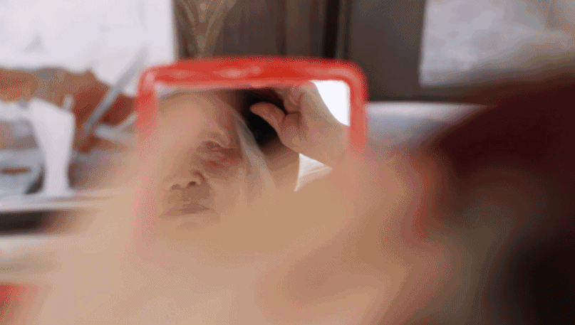 挑选了一件红色绣花开衫,杨婆婆对着镜子照了又照,把头发梳理得整整齐齐。“好看得‘不摆了’”,俩人在一旁“捧脚”。
