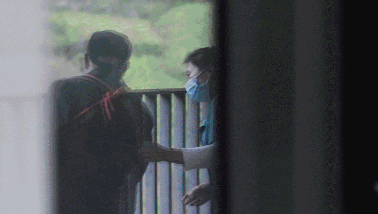 午饭后,两个00后工作人员在阳台上和婆婆跳起了舞。有趣的是,她们身上穿的不是工作服,而是拿自己的衣服跟婆婆互换的碎花裙,在阳光下快活得像两只翩翩的蝴蝶。