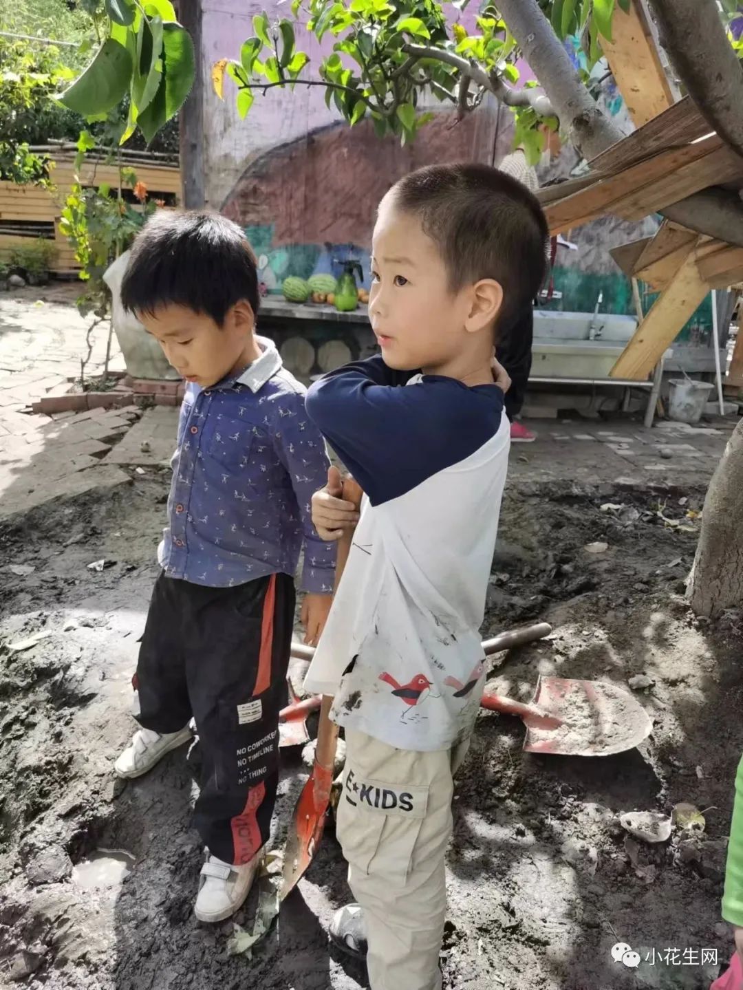 刚开始,我们还担心梧桐不能适应幼儿园的群体生活(毕竟之前一直没有去过幼儿园),但没想到第一天去接的时候,梧桐正拿着一把铁锹挖沟泥,全身上下全是泥点。