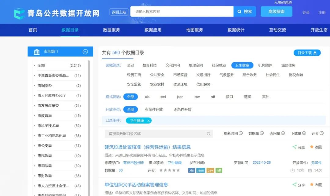 成绩的取得并非偶然,早在2012年,青岛就率先在全省开展公共数据汇聚、共享和开放工作,并围绕数据目录编制、质量管控、共享交换、分类分级、开发利用、安全保障等全流程,制定了一系列制度规范和技术标准,秉承需求导向的原则,推动社会关注度高、需求度高、价值密度高的公共数据开放,目前已开放教育科技、卫生健康等19个领域8000余项共7亿条数据,数据来源包含市、区两级政府部门及部分企业。近三年,数据开放量增长了10倍,为公共数据开放赋能奠定了坚实的基础。