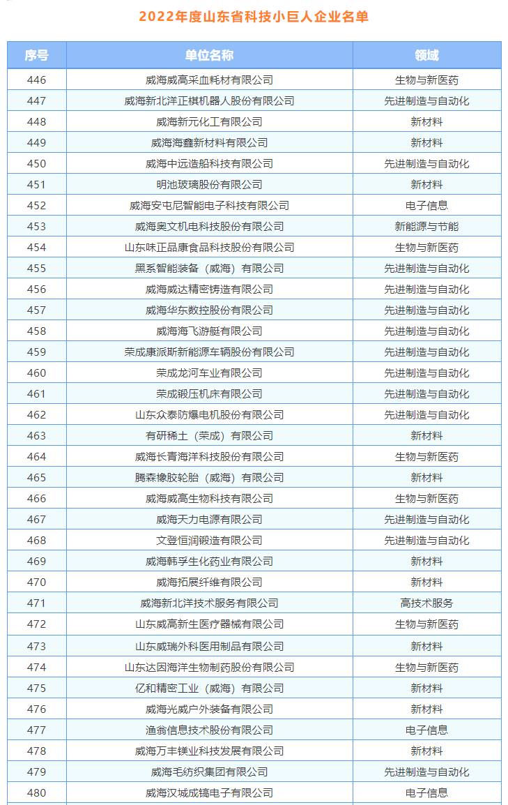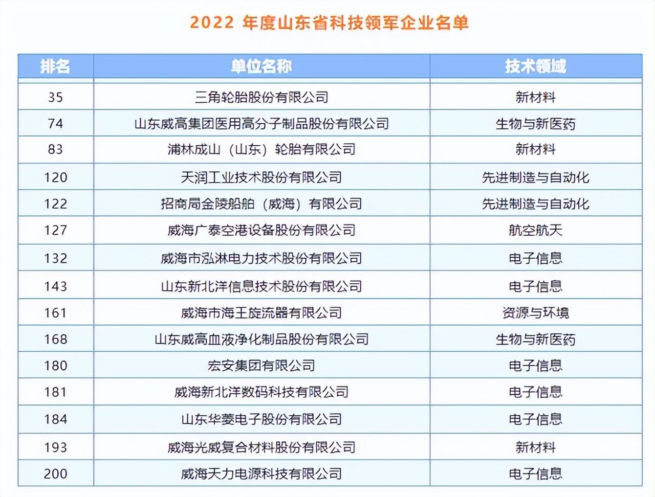 近日,2022年度山东省科技领军企业和首批科技小巨人企业名单发布,威海三角轮胎股份有限公司等15家企业入围科技领军企业,威海威高采血耗材有限公司等35家企业入选科技小巨人企业。