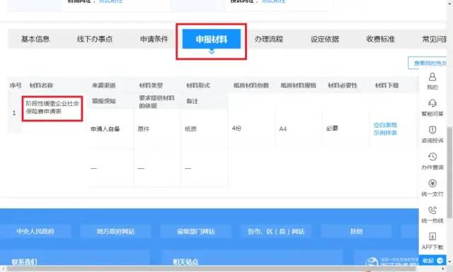 登录浙江政务服务网,搜索“申请阶段性缓缴社会保险费”,选择统筹区,在事项界面选择“申报材料”,直接下载申请表单。也可以直接在网上申请上传材料环节中下载。