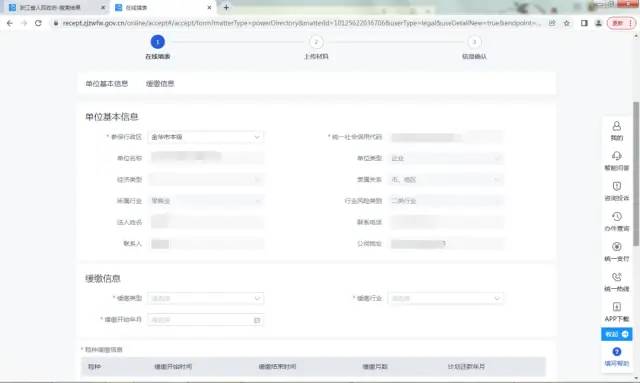 (2)在线填写单位信息,按实填报“缓缴类型”“缓缴行业”,选择“缓缴开始年月”。