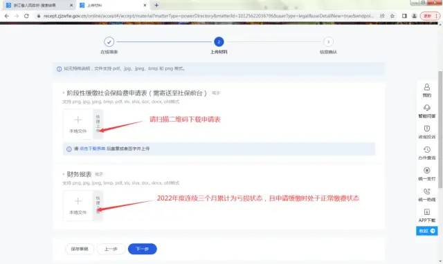 (3)上传申请表和财务报表。