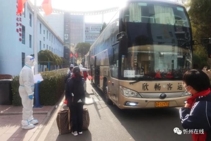 11月16日上午,随着10辆大巴车缓缓驶出校园,忻州一中最后一批在校学生全部转运至隔离点,进行集中隔离健康监测。