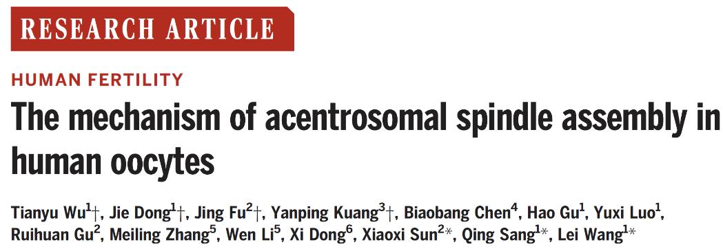 原标题:《【学术前沿】Science突破! | 打破认知:王磊/桑庆/孙晓溪揭开人类卵母细胞纺锤体组装之谜》