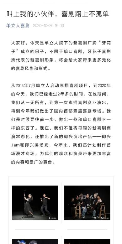 2018年起,单立人便陆续开始了素描喜剧、即兴表演、漫才等培训业务。素描喜剧追求节奏快、包袱密集,力求让观众简单直接的笑出来,对演员编排故事、演绎人物的能力要求极高。演员也可以在一场场的线下演出反复复盘、修改、打磨作品,提升自我。这些喜剧类型符合当下短视频时代的内容传播要求,是《二喜》中主要的节目类型之一,双方基因一致,有着先天的合作优势。