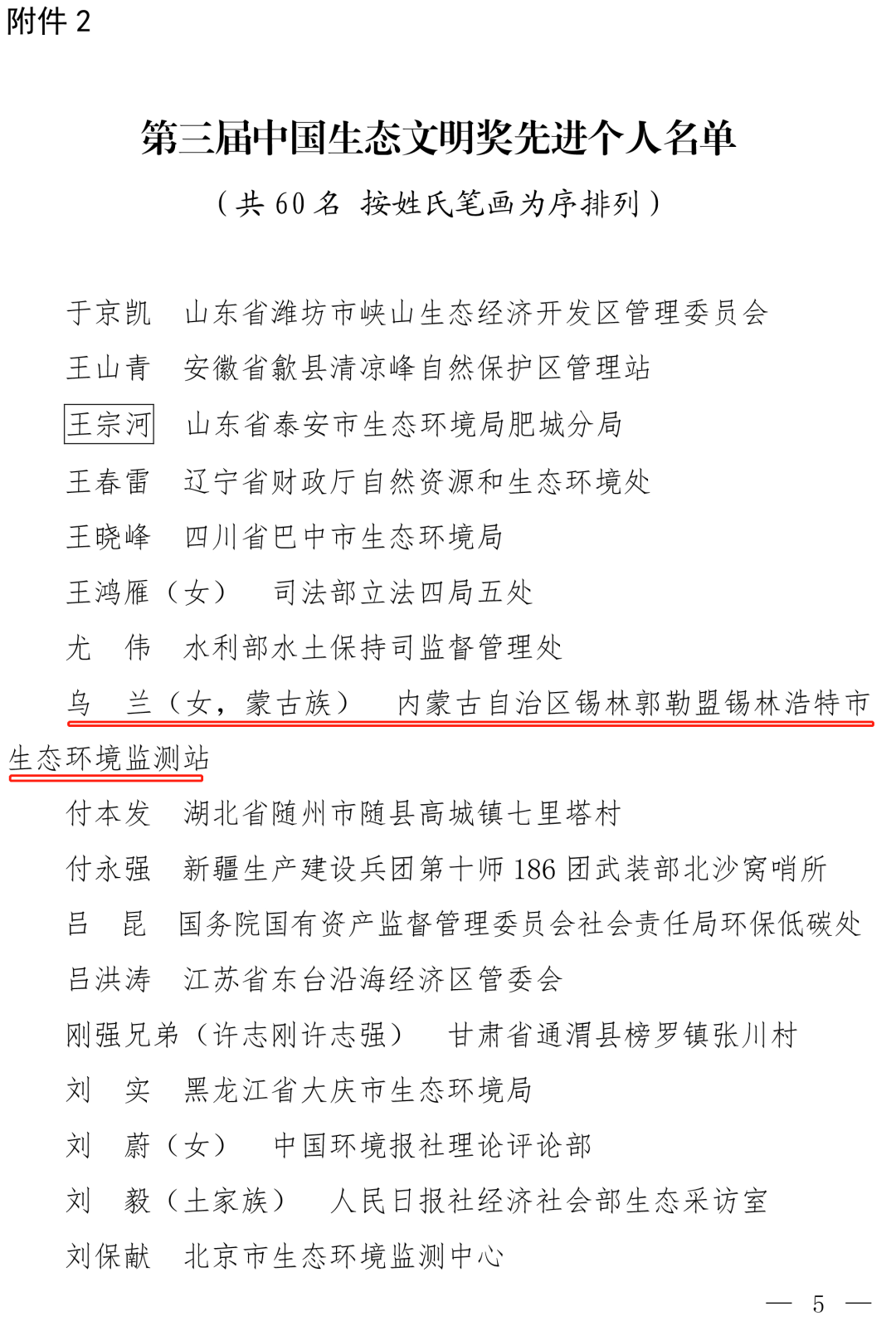 11月18日,生态环境部发布《关于命名第六批生态文明建设示范区的公告》《关于命名第六批“绿水青山就是金山银山”实践创新基地的公告》《关于表彰第三届中国生态文明奖先进集体和先进个人的公告》,锡林郭勒盟被命名第六批生态文明建设示范区,锡林郭勒盟乌拉盖管理区被命名为第六批“绿水青山就是金山银山”实践创新基地,锡林郭勒盟锡林浩特市生态环境监测站乌兰被授予“中国生态文明奖先进个人”称号。