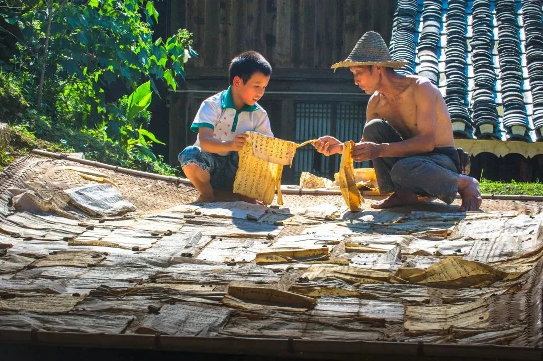 “锦屏文书”是我国保存较为完整、系统、集中的重要历史文献和珍贵民间档案。每年农历六月,文斗苗寨都有晒家谱、族谱及“锦屏文书”的习俗。村民在晾晒过程中向村里的小孩讲授“锦屏文书”的由来和内容,保护和传承民族文化。