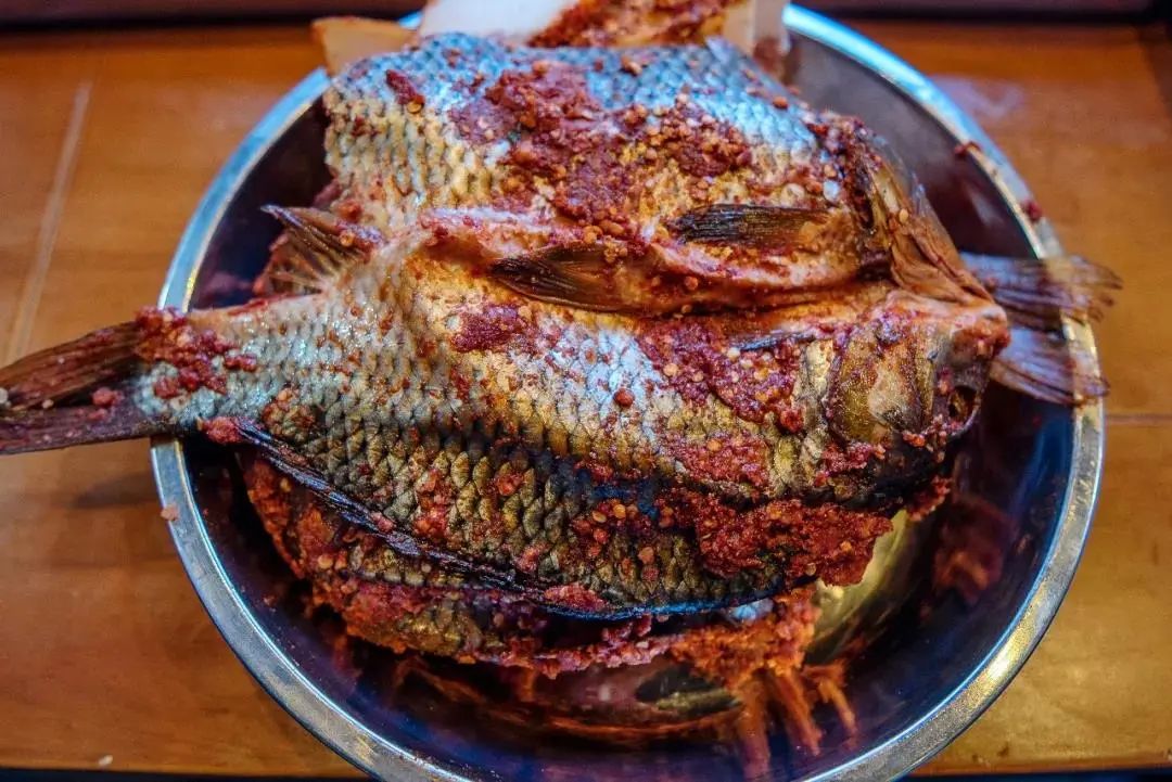 锦屏腌鱼获得“国家地理标志产品”称号,选用的是生活于稻田中的高背鲤鱼,经过宰杀、去内脏,与辣椒、糯米、香料、米酒、甜酒曲等混合,经过自然发酵后形成腌鱼。腌鱼是当地人招待客人的必备美味,腌制的时间越长,腌鱼中的酸香味越浓郁。