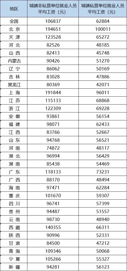 原标题:《31省平均工资发布:全国城镇非私营人均超10万元,京沪超19万元》
