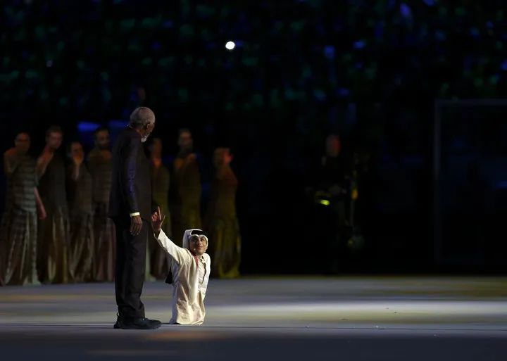 11月20日晚的卡塔尔世界杯开幕式上,一位双手支撑身体行走、只有上半身的男孩出现在海湾球场中央,成为观众最为难忘的场景之一。