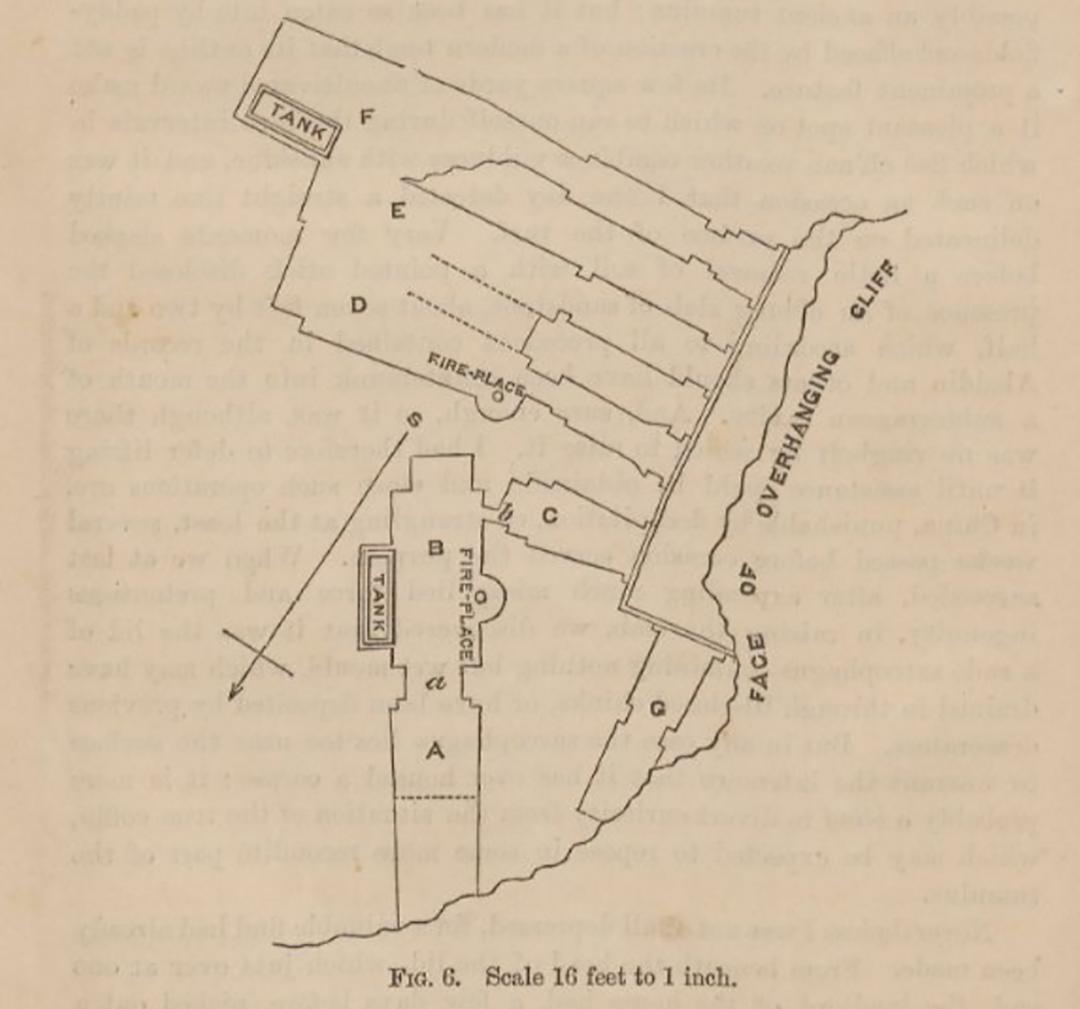 19世纪晚期,西方及日本学者对西南地区进行了不同路线设定的调研,崖墓引起了他们的集中关注。早期对崖墓的研究主要聚焦于建筑的功能分析、朝代分析和汉夷分析。英国驻京大使馆的贝德禄(E.Colborne Baber,1843—1890)较早开始留意崖墓。贝德禄于1875年自北京入西南,对西南及藏区进行多次调研,并撰写《华西旅行考查记》(Travels and Researches in Western China)。贝德禄在沿途见到许多被用作穴居的崖墓。他对犍为一座崖墓进行了详细调查并绘制了崖墓平面(图1~图3)。由于在很长一段时间内,这个崖墓被当作居室使用,所以虽然贝德禄起初认为这是一个墓室,但看到室内的火塘等生活痕迹后,便将石棺当作储水器来推测,误将崖墓判定为古代人的居所。尽管贝德禄的判断有误,但他仍然应该被视为崖墓田野调查的第一人。