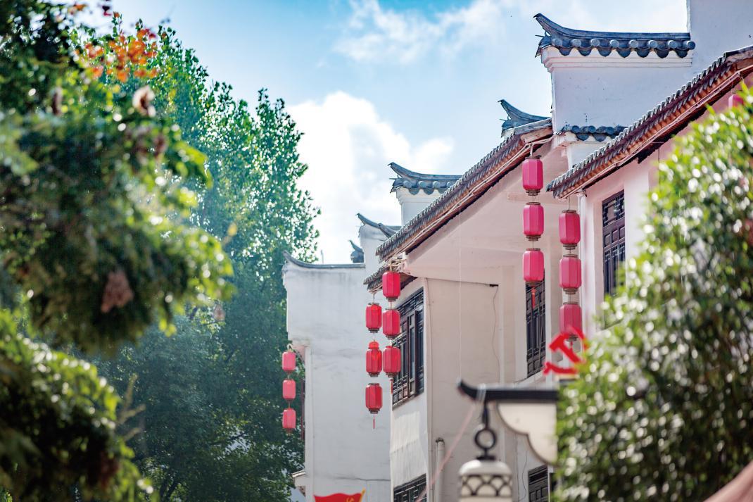 杨柳依依轻抚青瓦白墙,廻龙溪绿水流淌,木栈道沿河蜿蜒。走在岩脚古镇的街上,穿梭于古朴的建筑群,踏石板老街、探深巷幽弄,让人恍如走进了一段时空隧道。