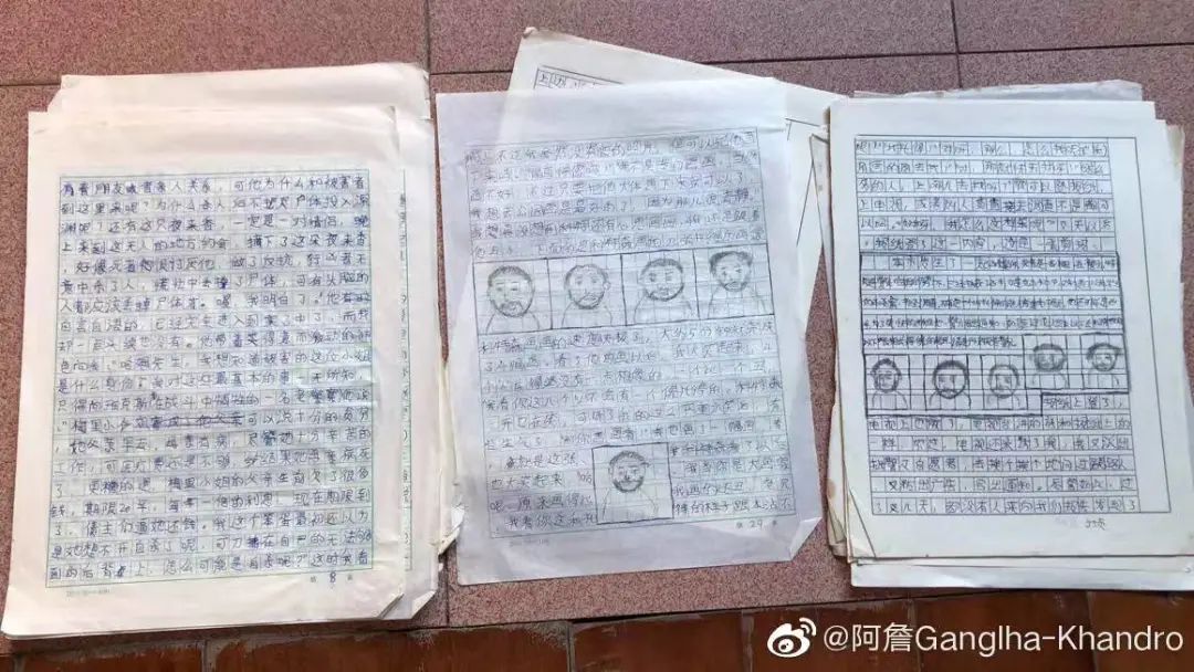 詹青云小学写的侦探小说和画,仍被妈妈保留着