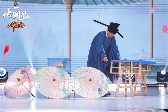 11月26日,第十八届中国国际动漫节中国国风品牌盛典在杭州奥体网球中心盛装开幕。国家级非物质文化遗产之一的西湖绸伞代表性传承人宋志明,把西湖绸伞独创的伞面装饰刷花技艺带上舞台。