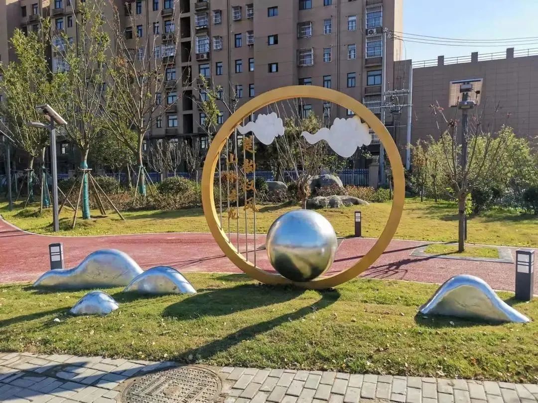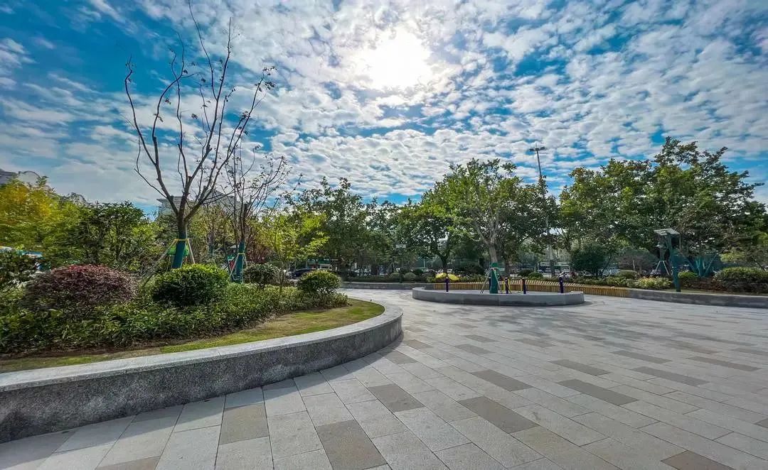为了让有限的空间兼顾景观性和实用性,公园内行道树选用榉树,在其南侧用银杏树做背景结合红叶石楠树组合,形成秋季特有的景观,并搭配家庭主题小品使景观层次分明。再搭配干净整洁的休闲步道,为周边居民打造了一处静谧、舒适、可观、可歇的休闲娱乐场所。