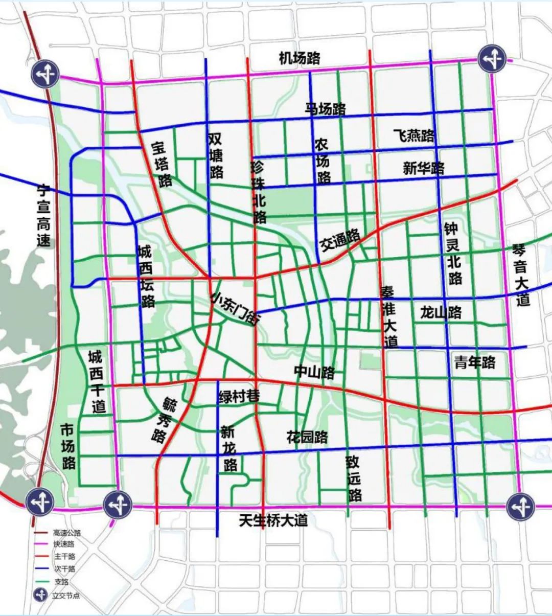 规划形成包括快速路、主干路、次干路和支路的四级道路等级体系∶