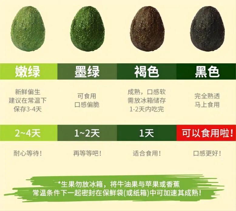 成熟的牛油果最为好吃,但判断牛油果的成熟度是一大难题。为了方便运输,牛油果一般在硬邦邦、绿油油的时候就要被摘下,会随着时间推移,牛油果会自己慢慢成熟。