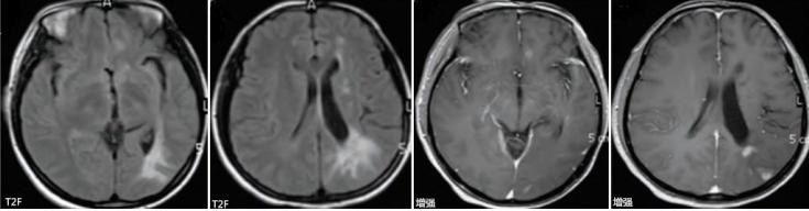 颅脑MRI表现:皮损侧颅内钙化、皮质及皮质下白质高信号病灶、萎缩及灰白质间界限不清。