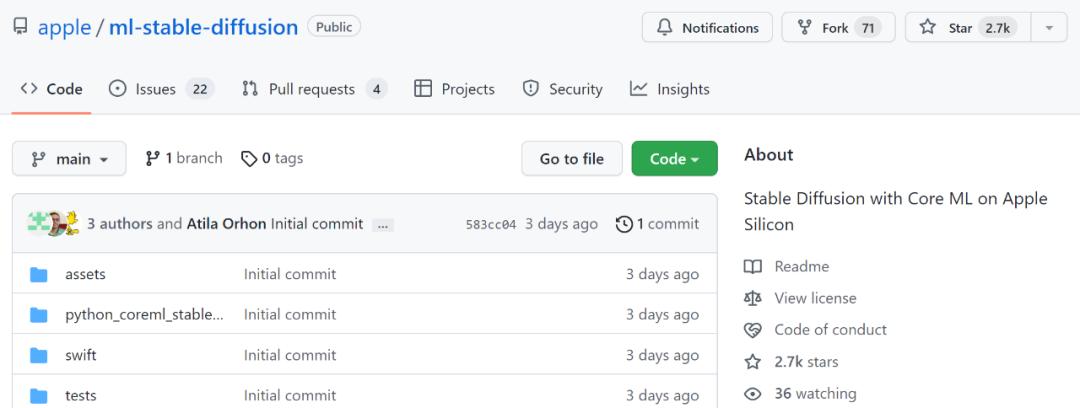 项目地址:https://github.com/apple/ml-stable-diffusion