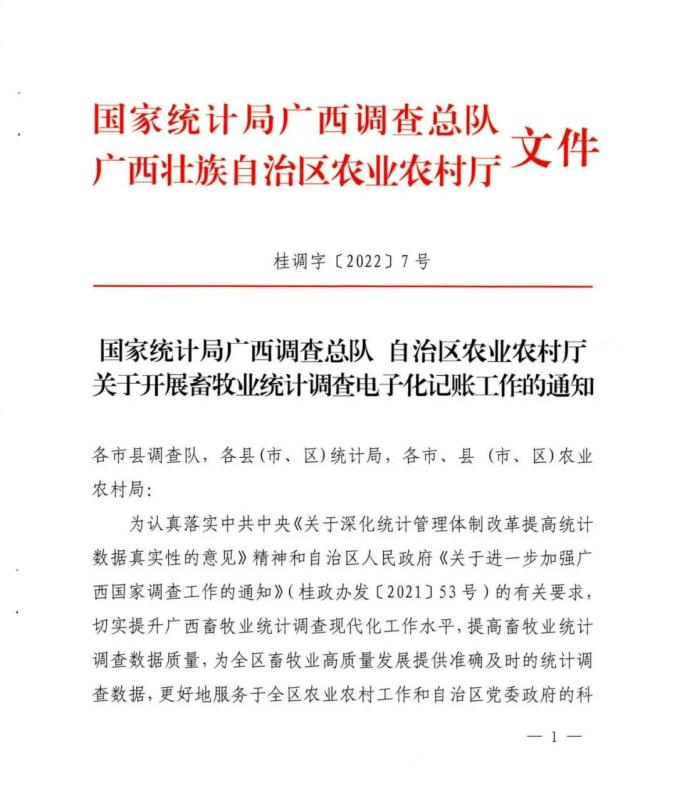 与自治区农业农村厅联合下发《关于开展畜牧业统计调查电子化记账工作的通知》,充分运用农业农村部门与养殖场(户)联系密切的优势,提升记账配合度。