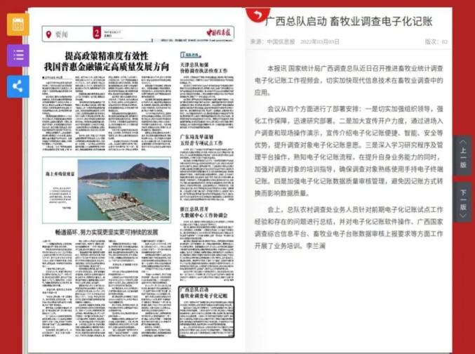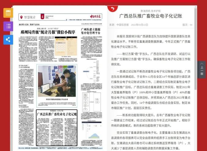 加快畜牧业统计调查信息化建设步伐,借助广西重要商品价格指数平台,搭建电子记账信息系统。
