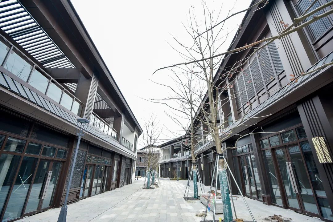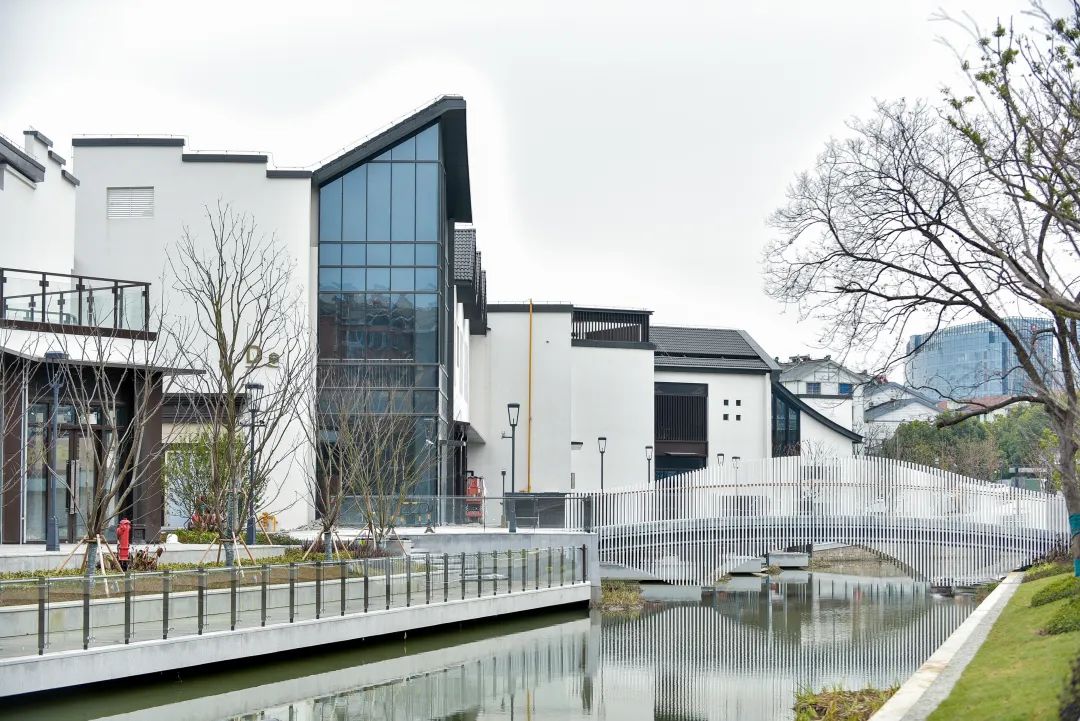 主体建筑以新中式水乡风格为主,形成“一街三院”的总体布局,将滨水景观与商业街区相融合,再现江南街区风韵。