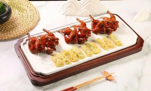 “虎鹤双形拳”是洪熙官自创的成名拳法。他也是所在竹洞村走出去的一位著名武术家。为致敬这位一代宗师,锦堂溿把最出名的口碑菜“烧乳鸽”和“天妇罗苦瓜”做了大胆的组合,取其谐音“虎鹤双形”,寓意:苦尽甘来,鹤鸣九皐。