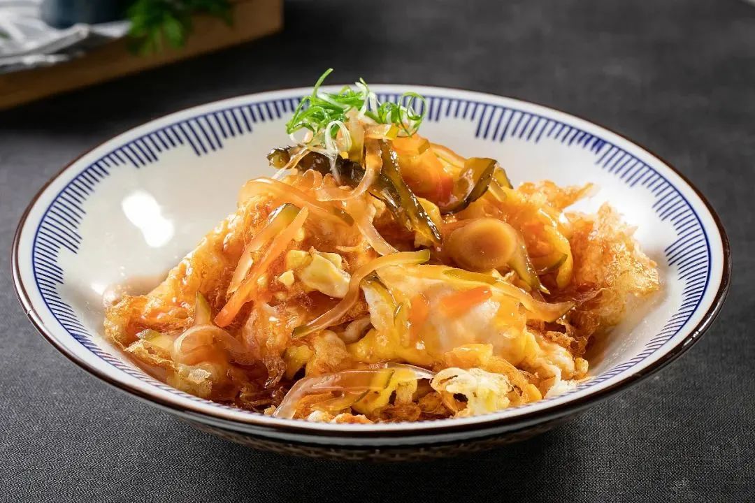 双提日月同样也是洪拳的招式。五柳炸蛋是每一个广东细路的下饭神菜,也是洪熙官小时候十分钟爱的“妈妈菜”。五柳炸蛋完全复刻当年的儿时味道,色泽诱人,外焦里嫩,酸甜脆爽集于一身,开胃又营养。鸡蛋被油炸后装在盆里像彩云遮日月,洪拳也正好有一式“双提日月”与之配搭,寓意:祥云绕天,日月完满。