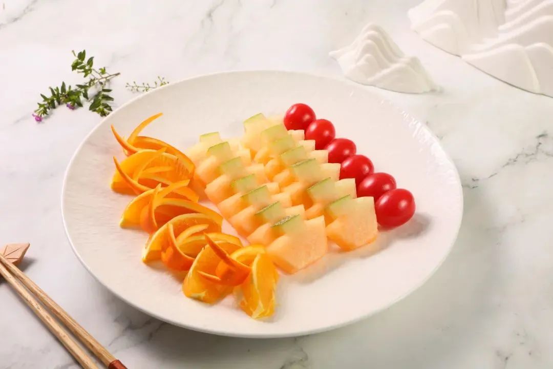 “金桥相定”是洪拳的最后一个招式,收手后两手垂直,就打完了整套拳法。聚离在桥上,多有相遇分离的情景,把这个招式用在“洪拳宴”的这个果盘上,也表示吃完这个水果拼盘,洪拳宴就结束了,期待拼为一盘,再遇再聚。