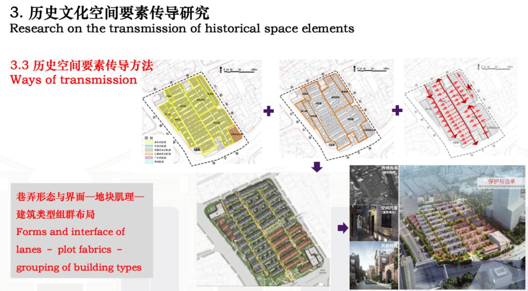 归纳来说,就是要通过图示传导街巷形态与界面、地块肌理、建筑类型组群布局等历史空间要素。