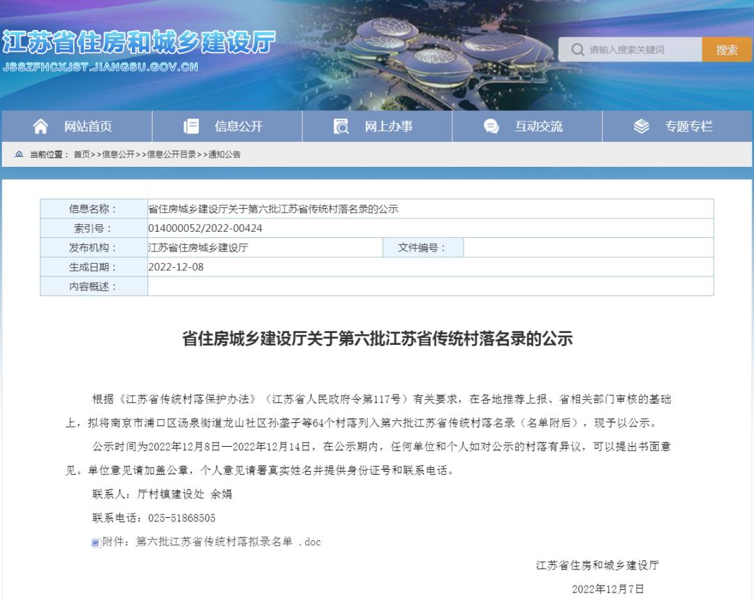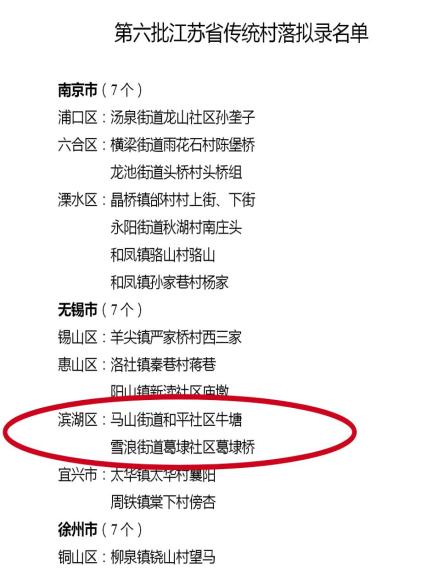 公示第六批江苏省传统村落名单