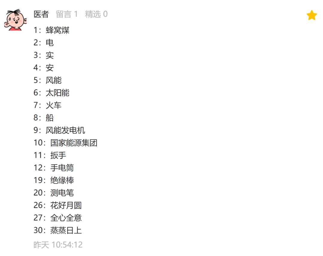 01.黑宝宝,会变红,满身正气发亮光,明知火海偏要下,舍己为人放光明。(打一能源)