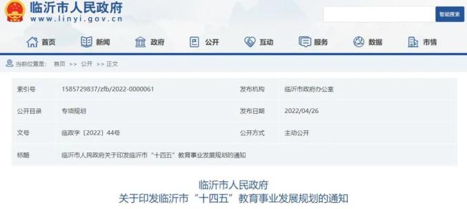 2022年4月25日,《临沂市“十四五”教育事业发展规划》(以下简称《规划》)正式发布。