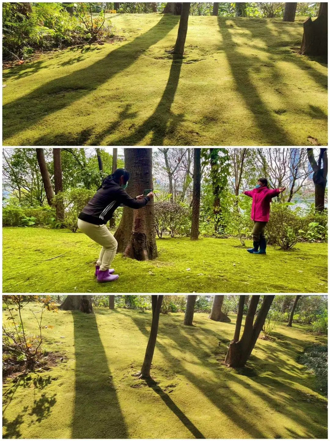 近日,路过东堤游园的市民游客会发现,林荫下翠绿的苔藓与游园内的乔灌木相得益彰,好似一幅油画,引得大家纷纷驻足拍照。